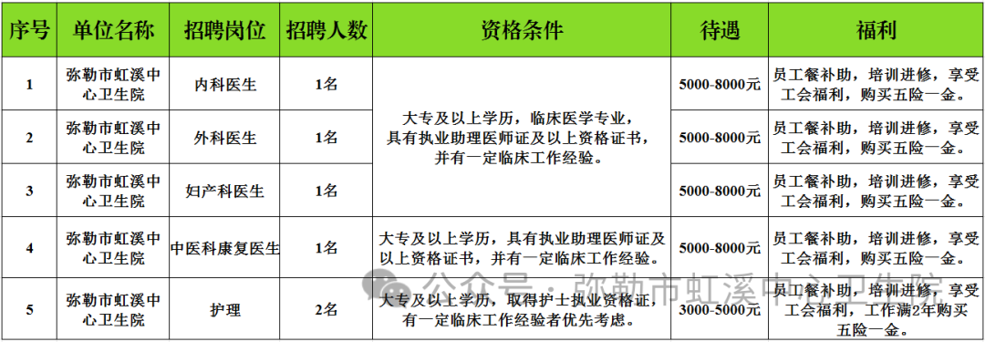 彌勒市虹溪中心衛(wèi)生院招聘專業(yè)技術(shù)人員公告