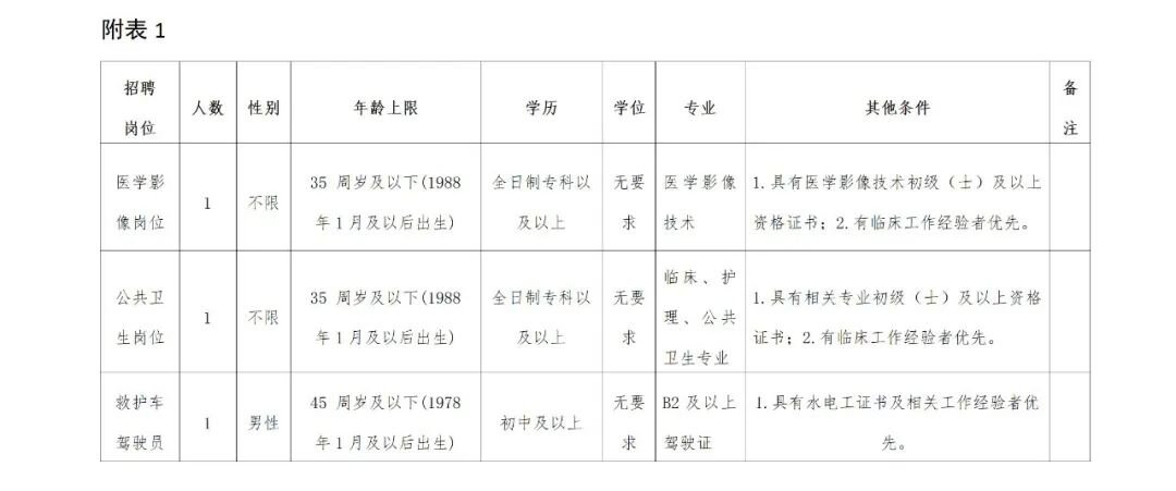 本次招聘醫(yī)學(xué)影像、公共衛(wèi)生、救護(hù)車(chē)駕駛員(含水電后勤)3個(gè)崗位,待遇按5000元/月(含社保)。