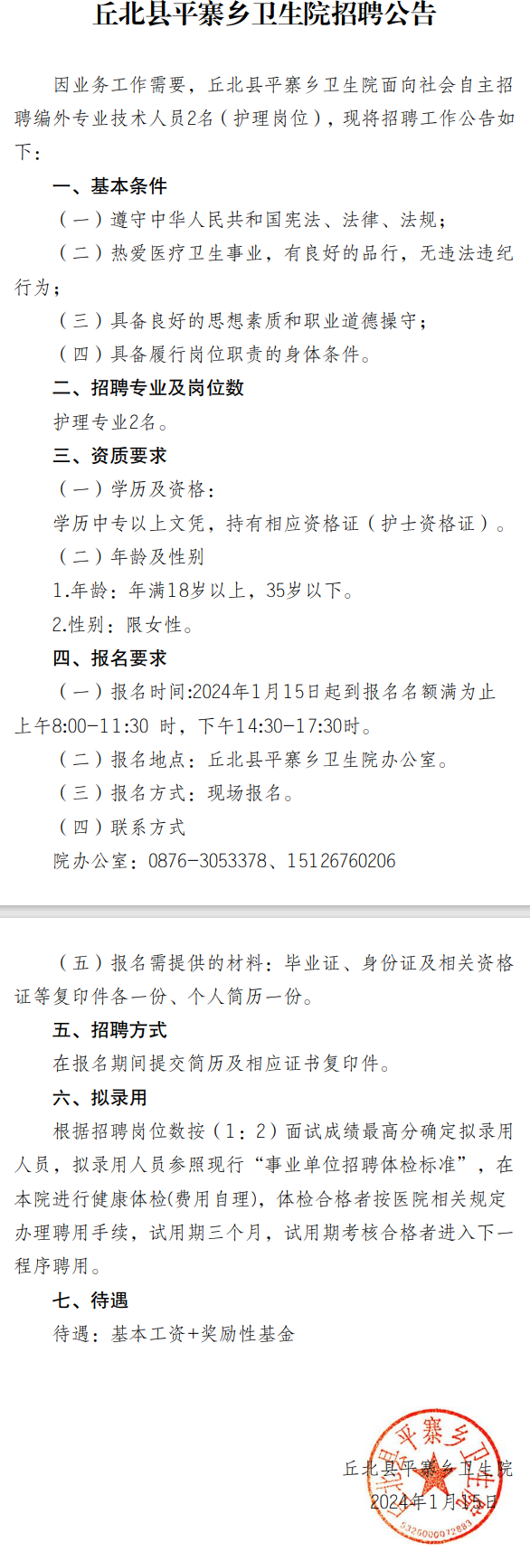 丘北縣平寨鄉(xiāng)衛(wèi)生院招聘公告