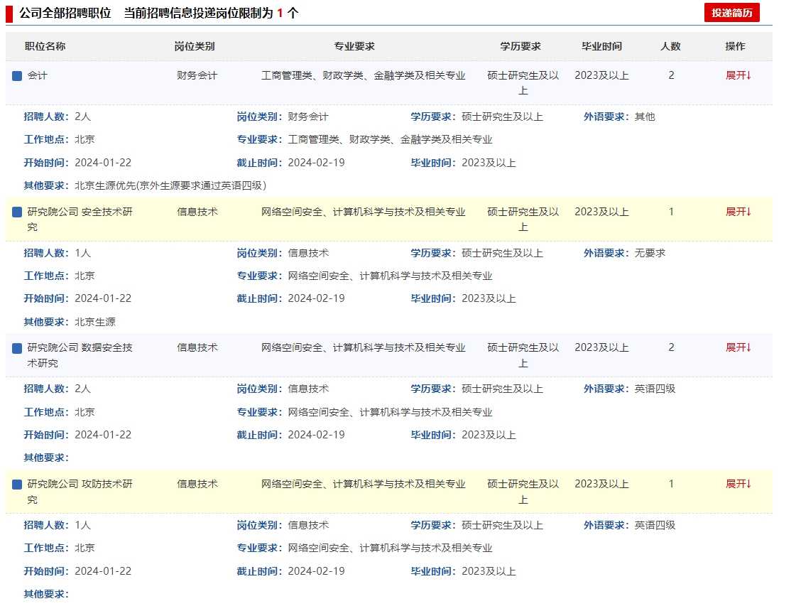 2024年度信息公司計(jì)劃招聘應(yīng)屆高校畢業(yè)生共計(jì)6名(含信息公司所屬中鐵信(北京)網(wǎng)絡(luò)技術(shù)研究院有限公司4人),詳見(jiàn)崗位列表。