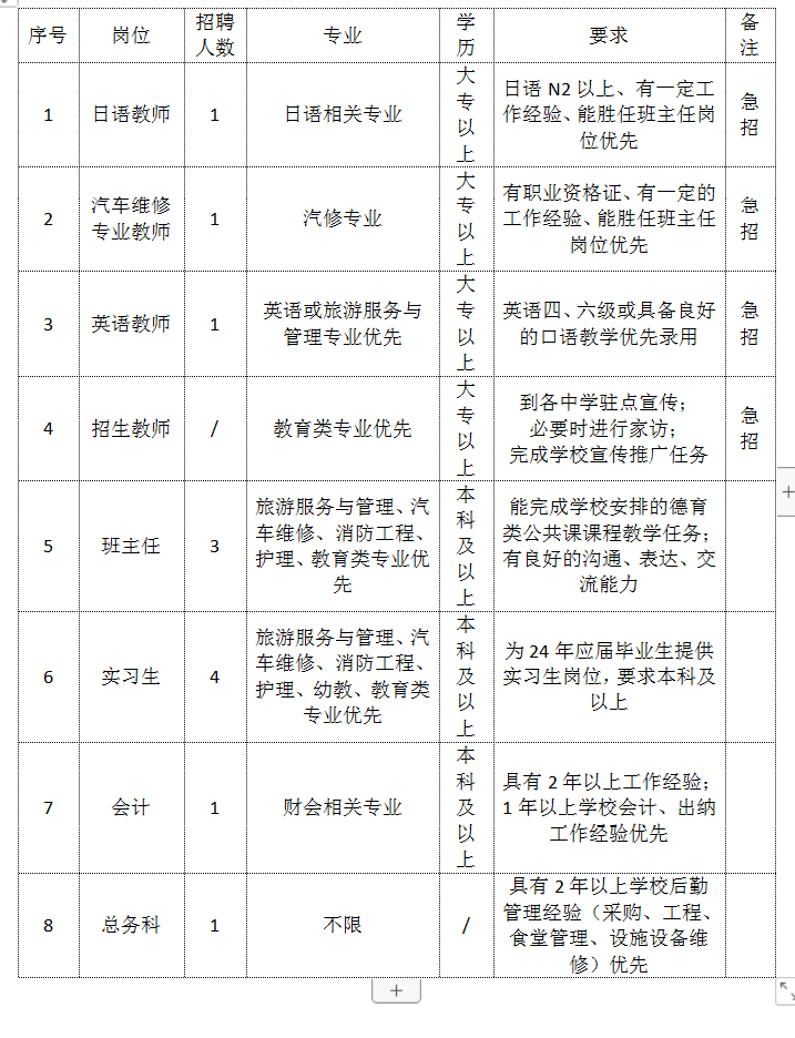 備注:急招教師面試合格后,2月份入職參加培訓(xùn),合格后馬上上崗。