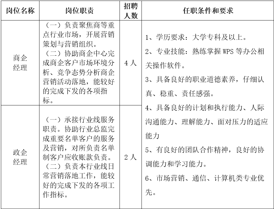 為滿足公司業(yè)務運營及創(chuàng)新業(yè)務發(fā)展的需要,我公司將招聘外包人員,邀您一起手連心、通前程,用智慧、科技、想象力創(chuàng)想美好智慧生活。