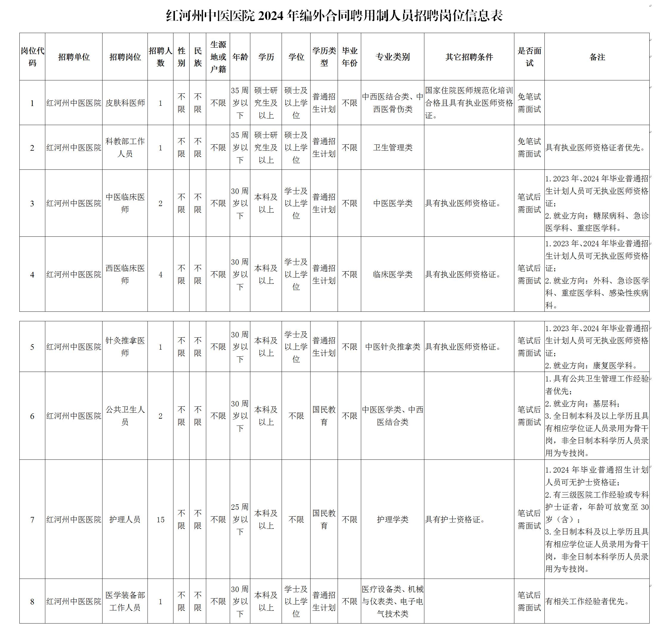 附件1:紅河州中醫(yī)醫(yī)院2024年編外合同聘用制人員招聘崗位信息表.xls