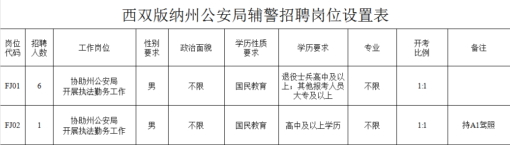 根據(jù)工作需要,西雙版納州公安局現(xiàn)面向社會公開招聘警務(wù)輔助人員(以下簡稱輔警),有關(guān)事項(xiàng)公告如下。