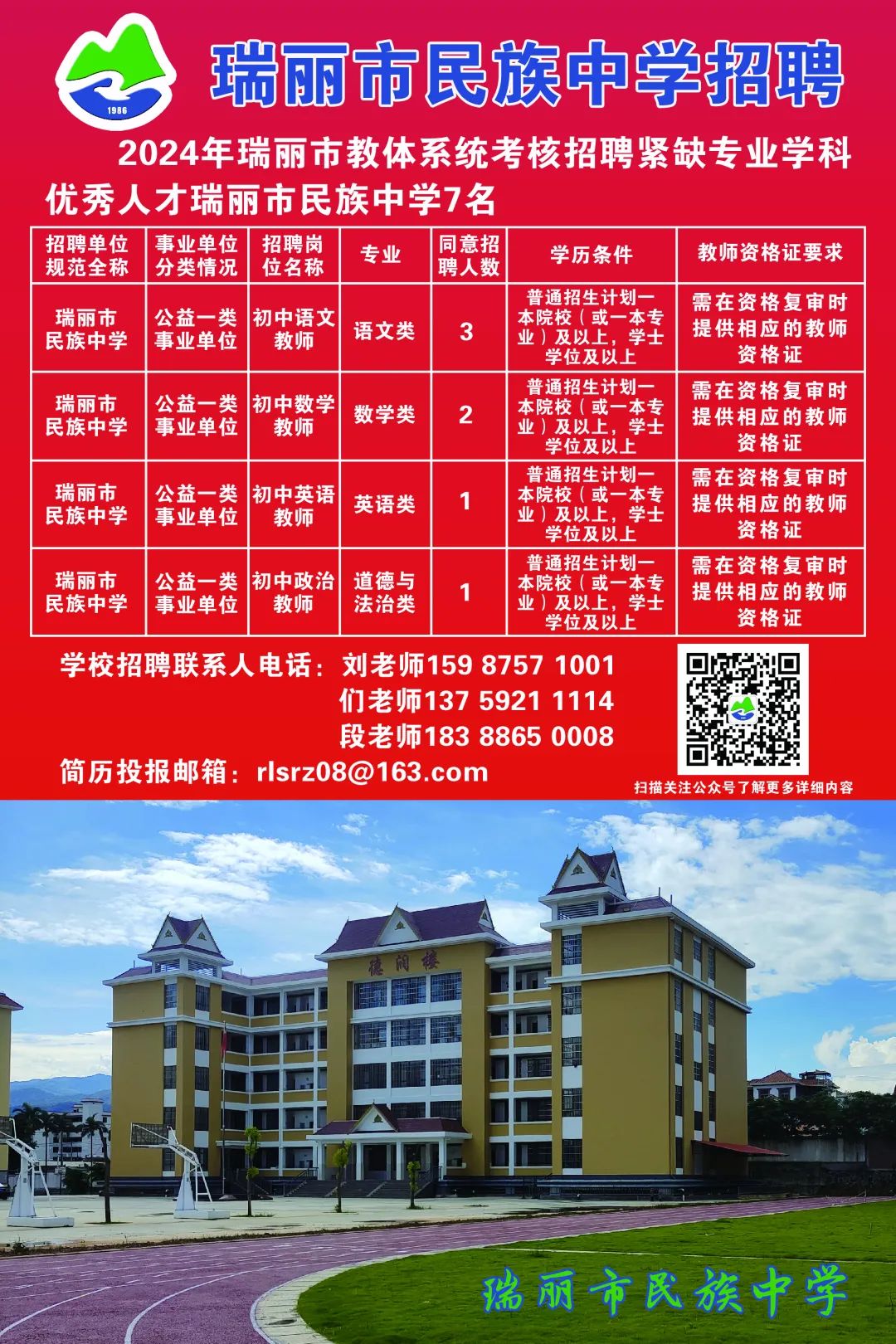 2024年德宏州瑞麗市民族中學(xué)招聘