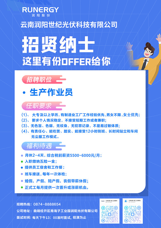 云南潤(rùn)陽(yáng)世紀(jì)光伏科技有限公司招聘公告