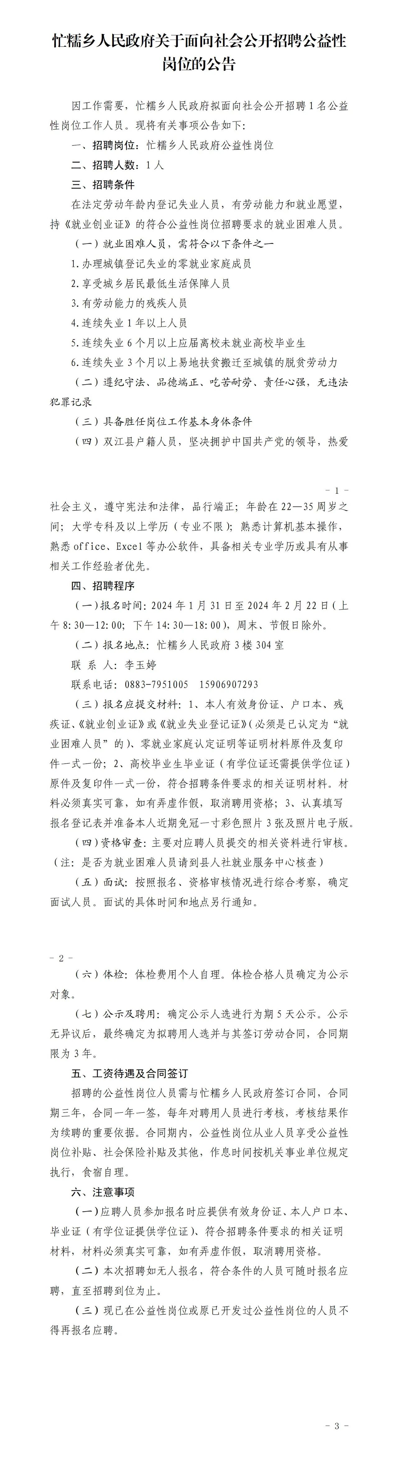 忙糯鄉(xiāng)人民政府關(guān)于面向社會公開招聘公益性崗位的公告