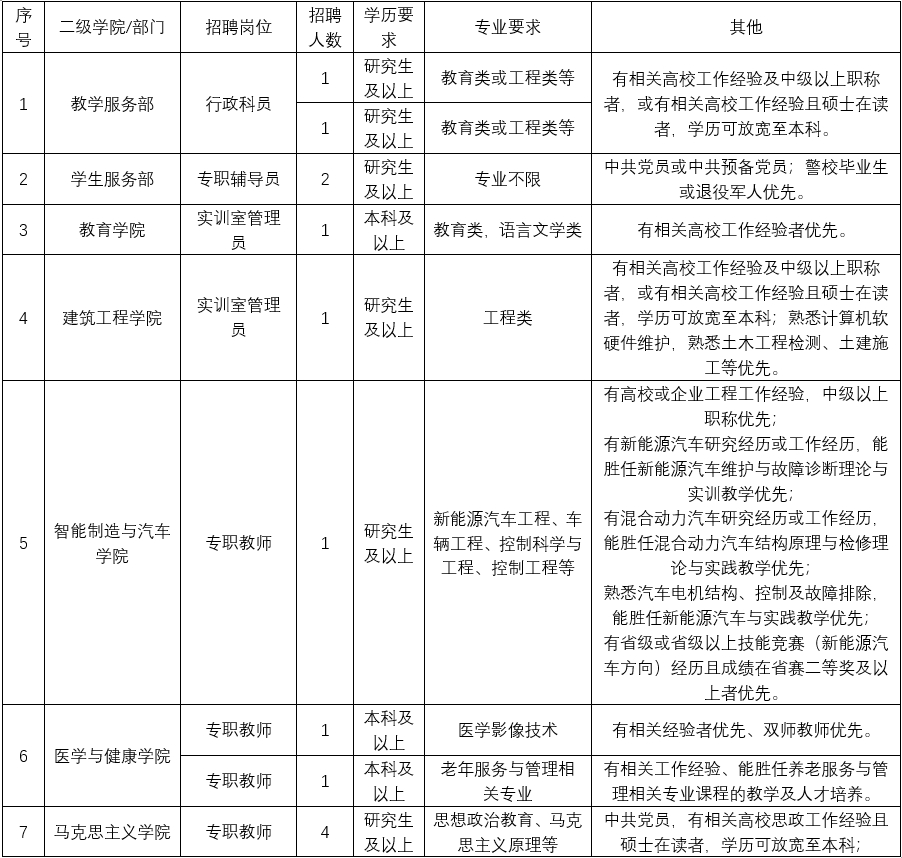 專職教師、專職輔導員、行政人員、技術人員招聘需求