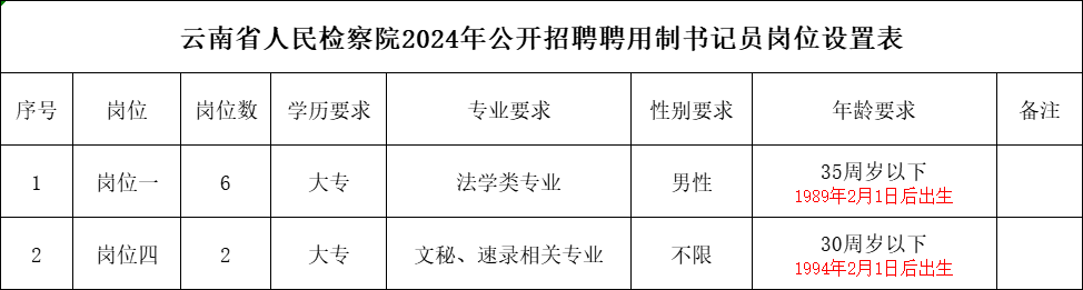 云南省人民檢察院2024年公開招聘聘用制書記員公告(2號)
