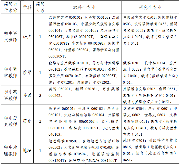 2.普通招生計(jì)劃一本院校(或一本專(zhuān)業(yè))及以上學(xué)歷2022年、2023年、2024年優(yōu)秀畢業(yè)生,所學(xué)專(zhuān)業(yè)與招聘教學(xué)崗位要求相符(未在編在崗,在校期間總體成績(jī)優(yōu)異,所學(xué)專(zhuān)業(yè)必修科目無(wú)掛科且須在資格復(fù)審時(shí)提供相應(yīng)的教師資格證)。