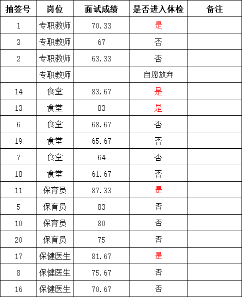 澄江市機(jī)關(guān)幼兒園立昌園區(qū)勞務(wù)派遣工作人員面試成績(jī)公示及進(jìn)入體檢人員的通知