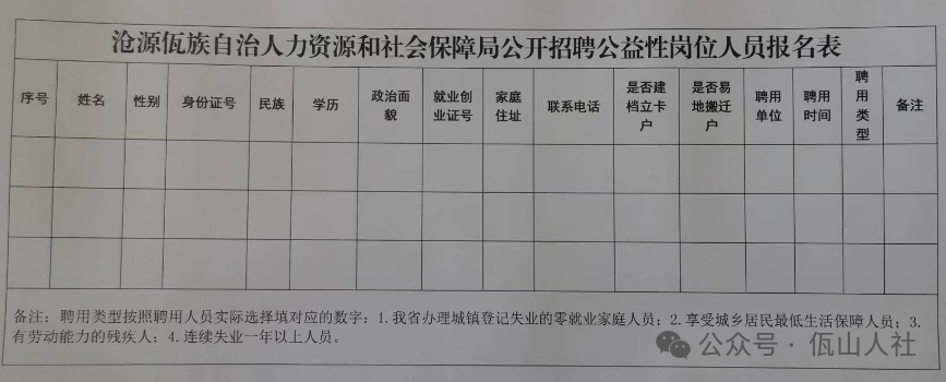 (二)報名地點:滄源佤族自治縣人力資源和社會保障局三樓辦公室。