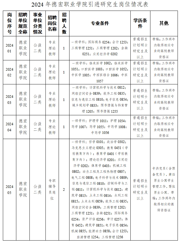 德宏職業(yè)學(xué)院2024年引進研究生公告