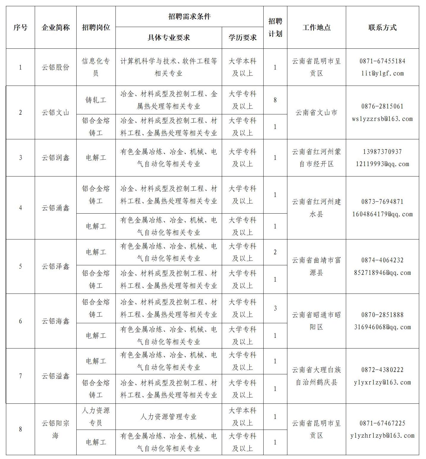 云南鋁業(yè)股份有限公司2024年高校畢業(yè)生招聘公告