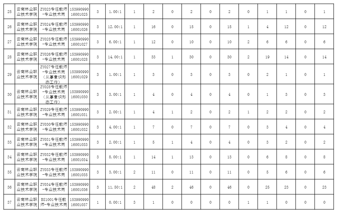 云南林業(yè)職業(yè)技術學院2024年公開招聘人員系統(tǒng)報名人數公布