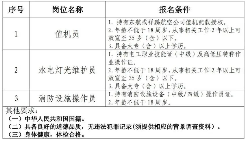(一)值機(jī)員、水電燈光維護(hù)員崗位僅在滄源機(jī)場業(yè)務(wù)外包人員內(nèi)招聘。