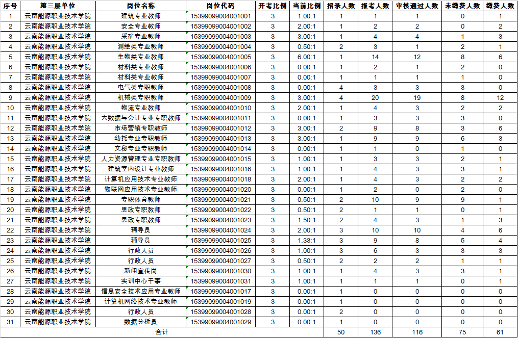 2024年云南能源職業(yè)技術(shù)學(xué)院公開招聘人員報(bào)名情況統(tǒng)計(jì)