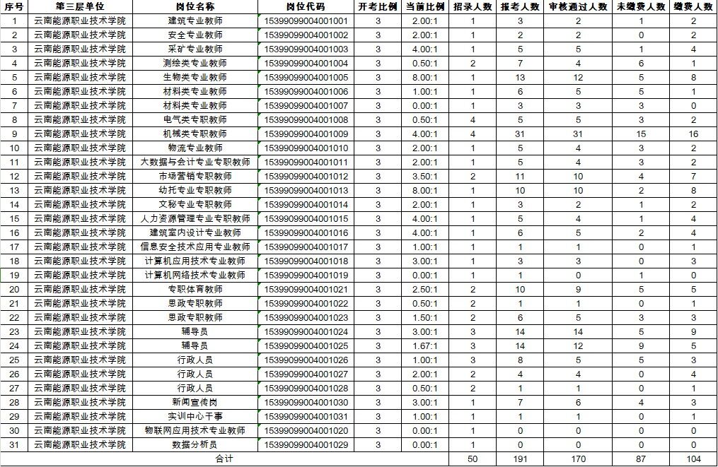 2024年云南能源職業(yè)技術(shù)學(xué)院公開招聘人員報(bào)名情況統(tǒng)計(jì)