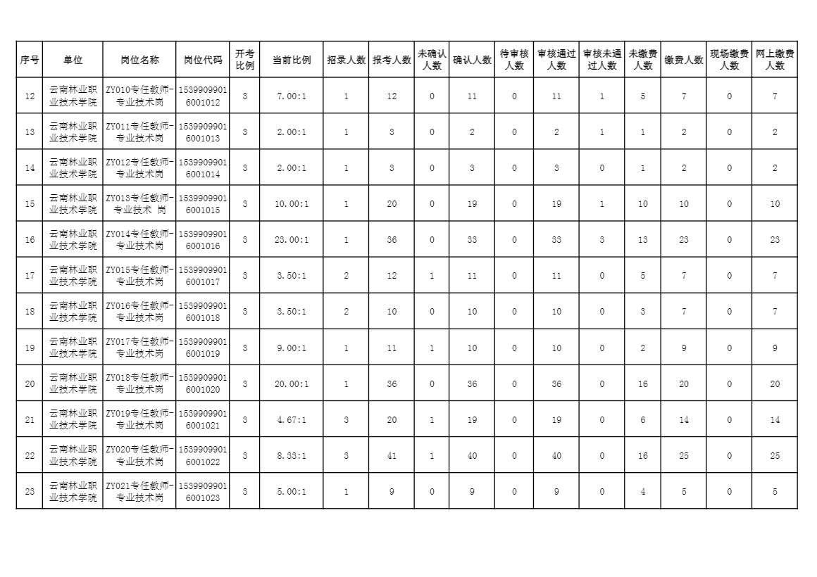 云南林業(yè)職業(yè)技術(shù)學(xué)院2024年公開招聘人員系統(tǒng)報名人數(shù)公布