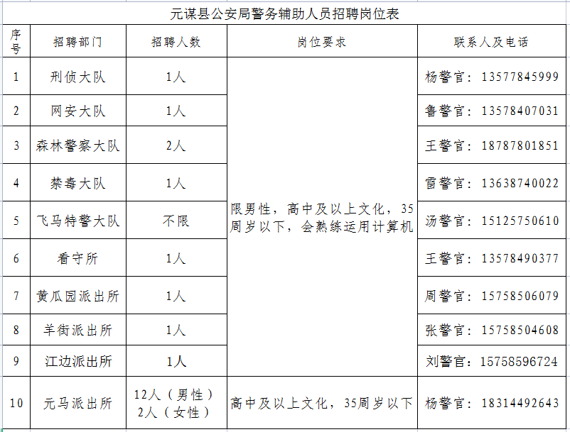 因工作需要,元謀縣公安局面向社會公開招聘警務(wù)輔助人員,現(xiàn)將有關(guān)事項公告如下: