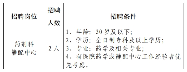 根據(jù)醫(yī)院業(yè)務(wù)發(fā)展需求,現(xiàn)需招聘藥劑科工作人員2名,具體招聘條件如下: