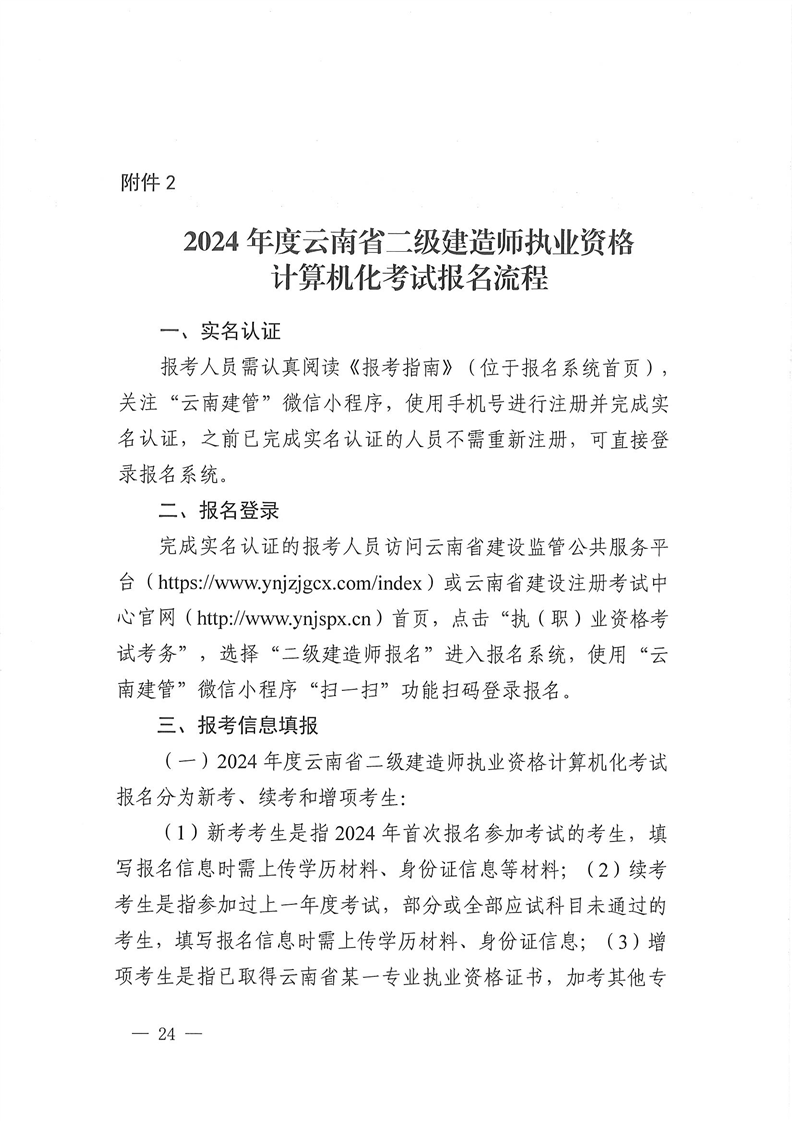 關(guān)于2024年度云南省二級(jí)建造師執(zhí)業(yè)資格計(jì)算機(jī)化考試有關(guān)工作的通知