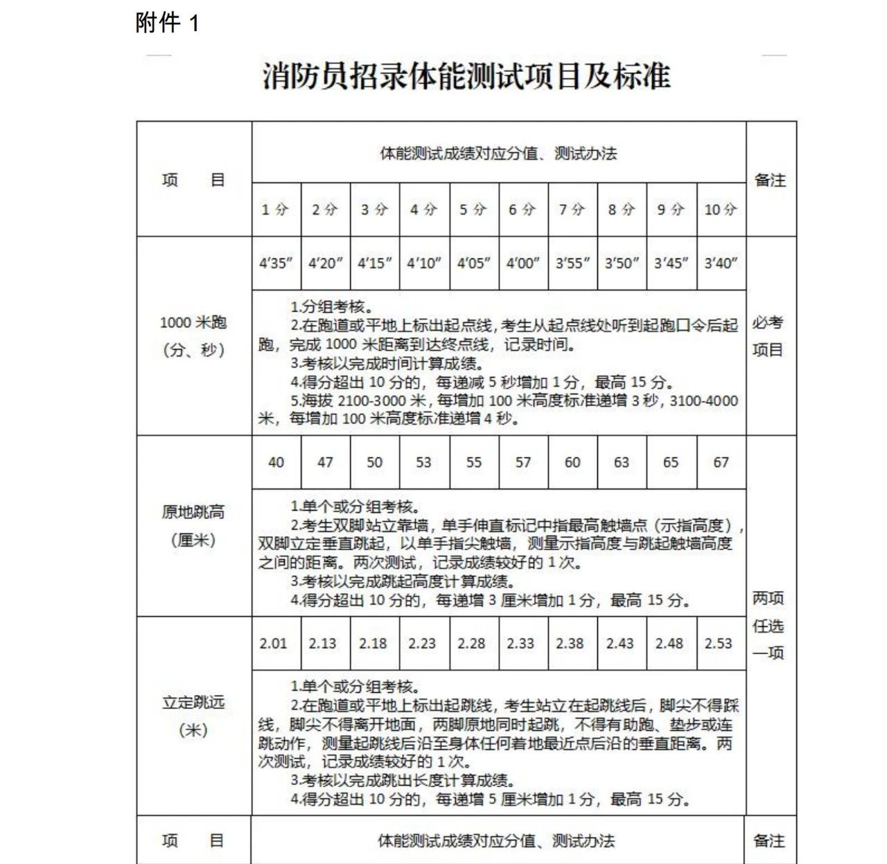 經(jīng)資格審查合格的應聘人員參加體能測評,測試科目參照國家消防員招錄標準執(zhí)行,體能測試不合格的,不得進入下一環(huán)節(jié)。