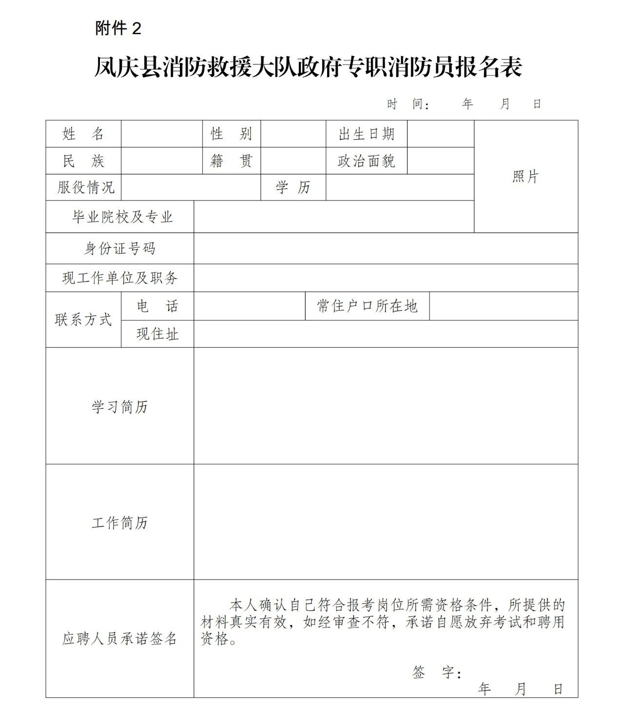 應聘者報名前仔細閱讀《鳳慶縣消防救援大隊政府專職消防員招聘公告》,到報名點填寫《鳳慶縣消防救援大隊公開招聘政府專職消防隊員報名表》并認真核對個人報考信息。報名時須攜帶本人畢業(yè)證、身份證、戶口簿、近期免冠證件照4張(1寸藍底)及相關證書證件原件和復印件。