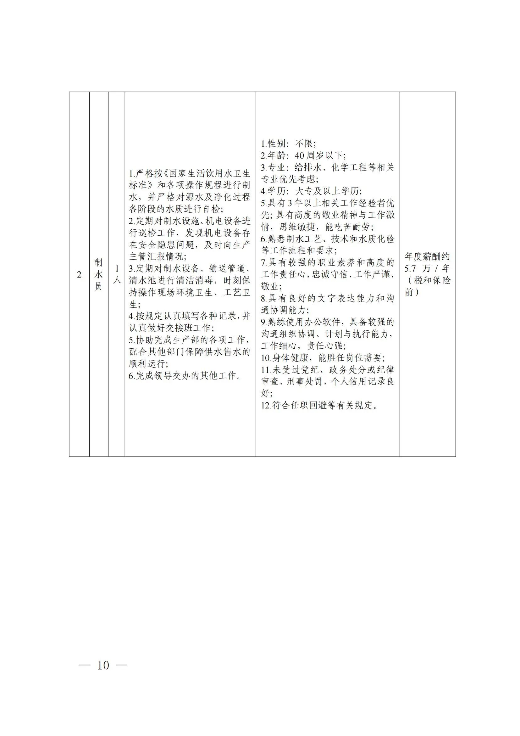 (三)具備全日制大專及以上學(xué)歷,年齡在40周歲及以下(即1984年1月以后出生),如有給排水工程及制水工作經(jīng)驗者或特別優(yōu)秀的人員,文化程度可以適當(dāng)放寬至高中、中專以上,年齡要求可以適當(dāng)放寬至45周歲;