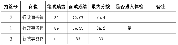 關于行政事務崗遞補人員面試成績公示及進入體檢人員的通知