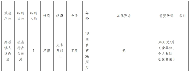 路居鎮(zhèn)人民政府因工作需要,委托澄江市啟澄人力資源有限責(zé)任公司,面向社會(huì)公開招聘辦公輔助工作人員1名,現(xiàn)將有關(guān)事項(xiàng)公告如下: