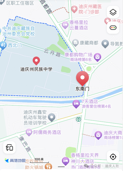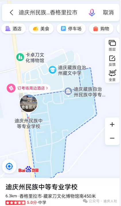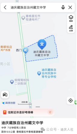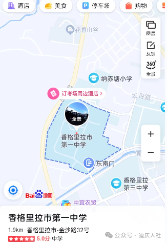 迪慶州第一中學(xué)考點(diǎn)(圖中“迪慶州民族中學(xué)北校...”字樣定位為入口):