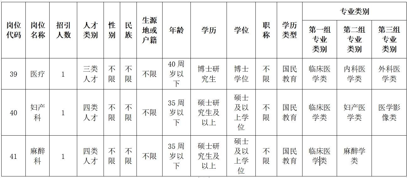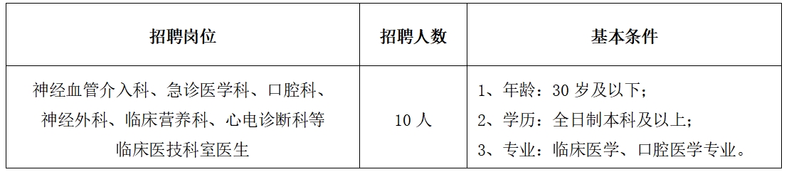 此次招聘會將同時進(jìn)行我院編外醫(yī)生的自主招聘及簽約,崗位及基本條件如下: