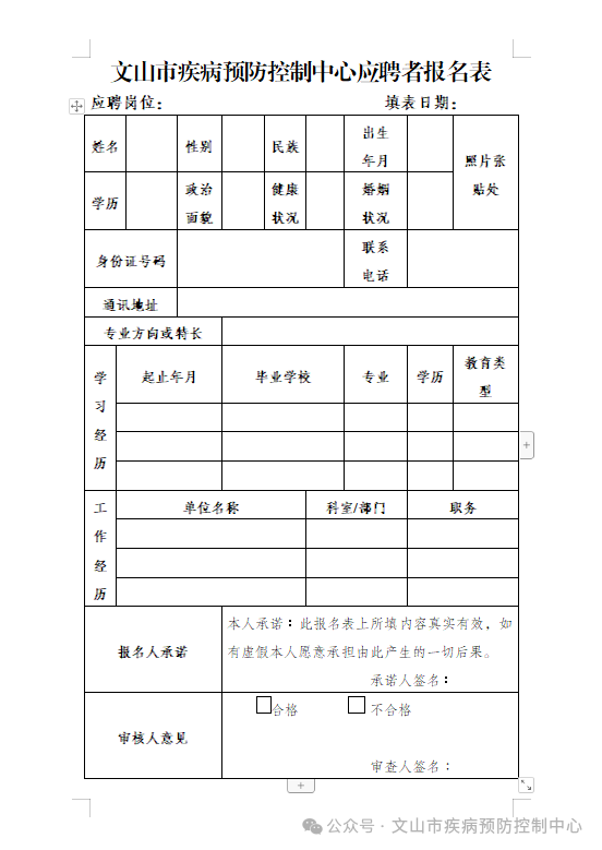 文山市疾病預(yù)防控制中心應(yīng)聘者報(bào)名表.docx
