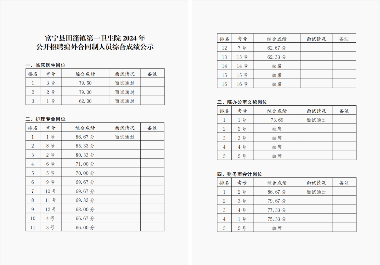 富寧縣田蓬鎮(zhèn)第一衛(wèi)生院2024年公開招聘編外合同制人員成績公示