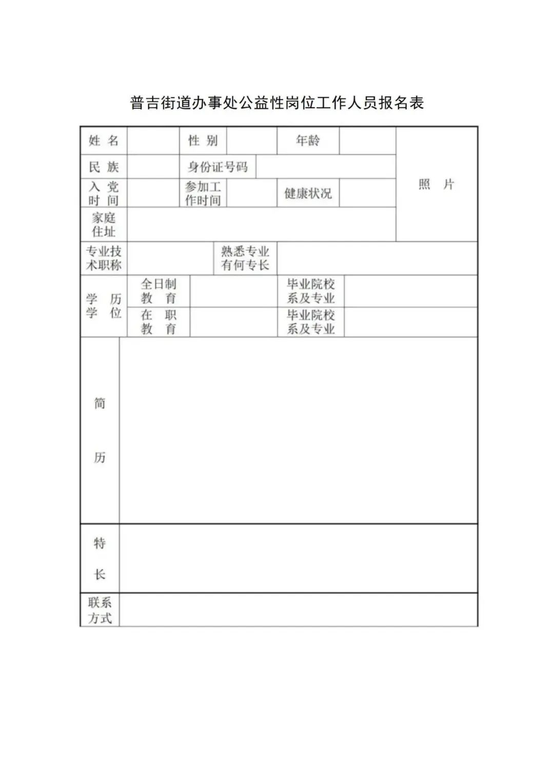附件:普吉街道辦事處公益性崗位工作人員報(bào)名表