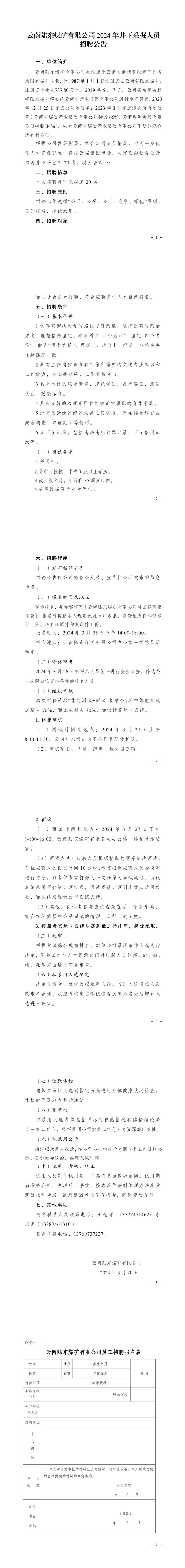 云南陸東煤礦有限公司2024年井下采掘人員招聘公告
