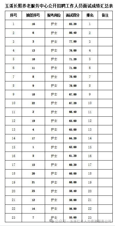 附件:玉溪長(zhǎng)照養(yǎng)老服務(wù)中心公開(kāi)招聘工作人員面試成績(jī)匯總表