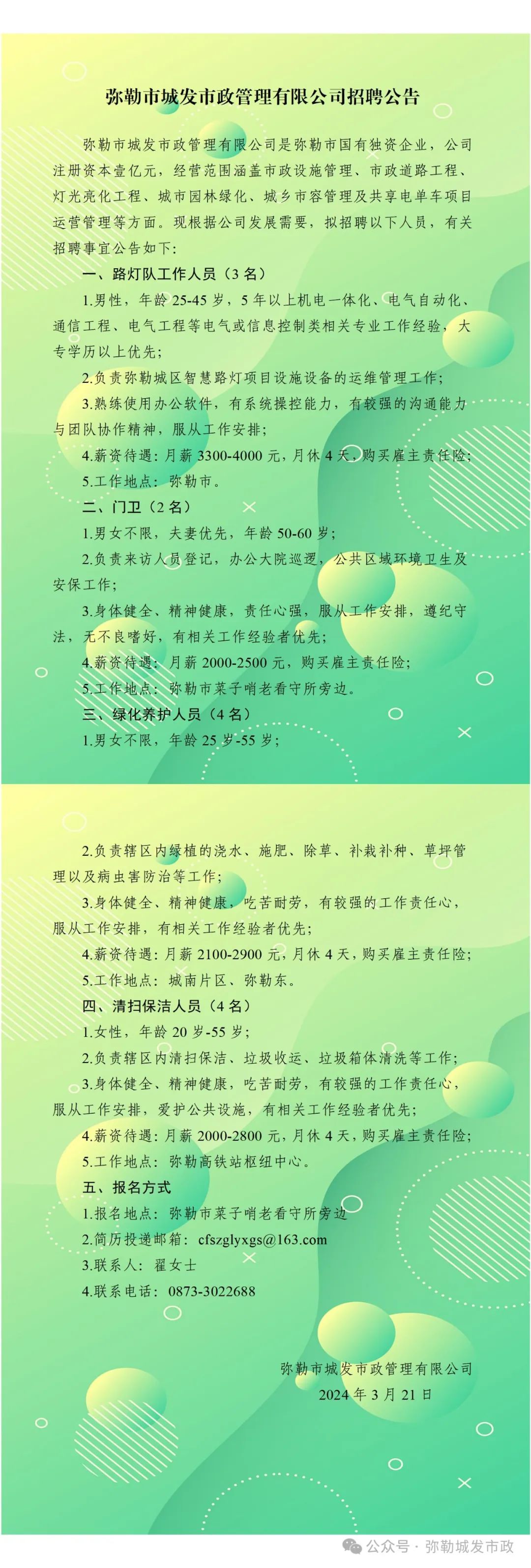 彌勒市城發(fā)市政管理有限公司招聘公告