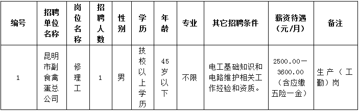 (一)生產(chǎn)(工勤)崗位1個:修理工1名。