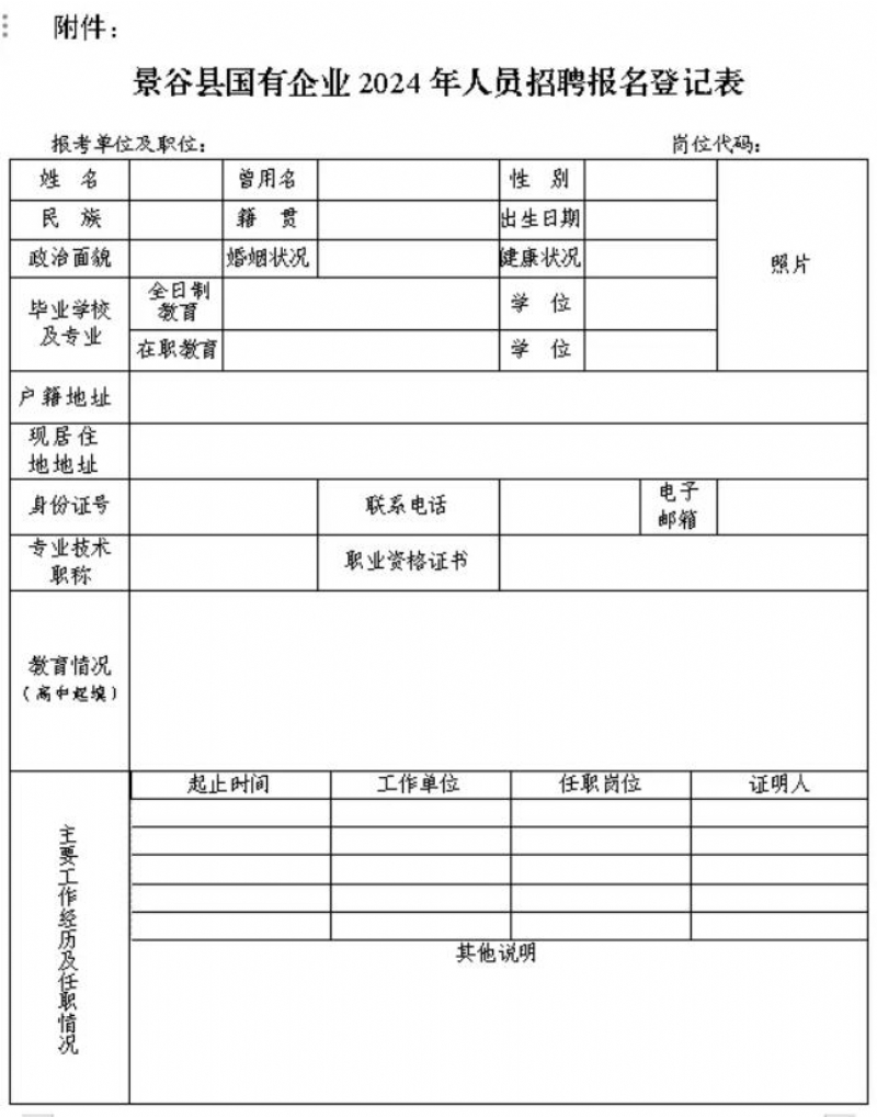 附件:景谷縣國有企業(yè)2024年高級(jí)管理人員招聘報(bào)名登記表
