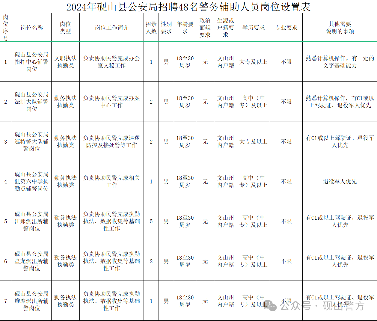 2、筆試時(shí)間和地點(diǎn):另行通知,注意關(guān)注“硯山警方”微信公眾號(hào)