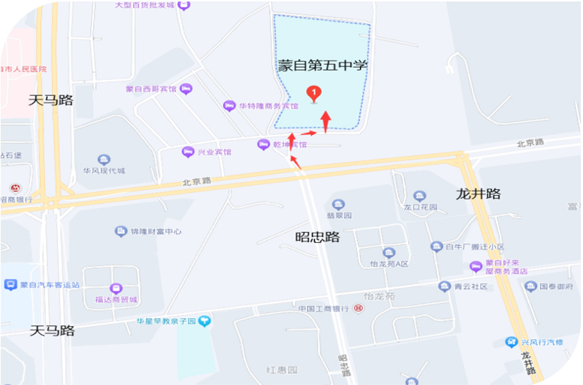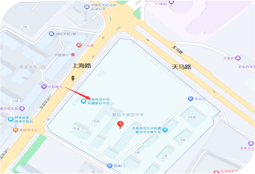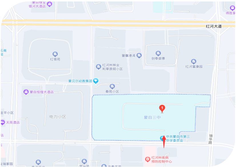 具體地址:蒙自市上海路南延長線紅河職業(yè)技術(shù)學(xué)院1號門進(jìn)入直行400米左側(cè)(見下圖)