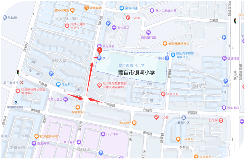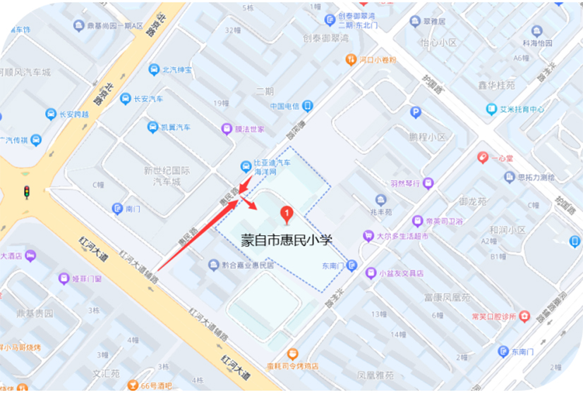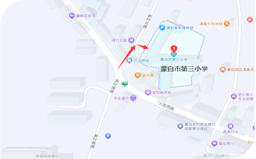 具體地址:蒙自市上海路南延長線紅河職業(yè)技術(shù)學(xué)院1號門進(jìn)入直行50米左側(cè)(見下圖)
