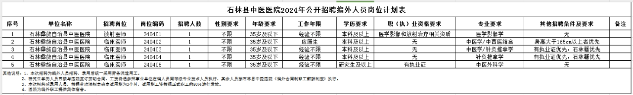 附件:《石林縣中醫(yī)醫(yī)院2024年面向社會公開招聘編外人員崗位計劃表》