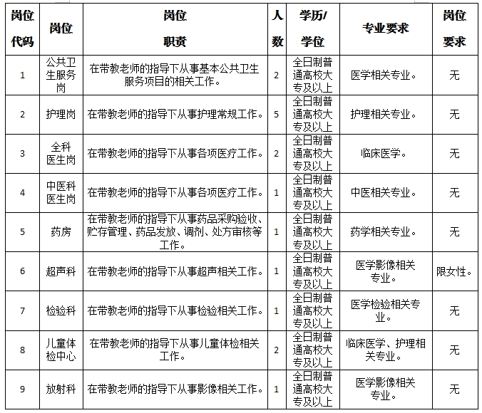 2.符合見(jiàn)習(xí)條件的人員上崗前將參加醫(yī)院組織的為期一周的崗前培訓(xùn)。