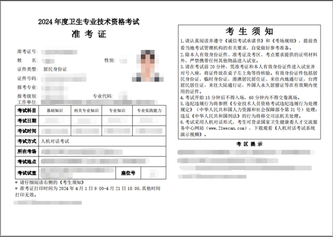 (衛(wèi)生專業(yè)技術(shù)資格考試準考證圖例)