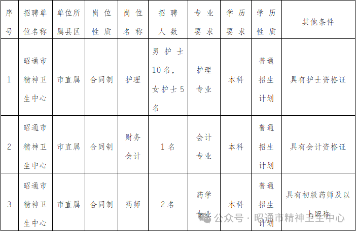 昭通市精神衛(wèi)生中心2024年公開(kāi)招聘合同制人員通告