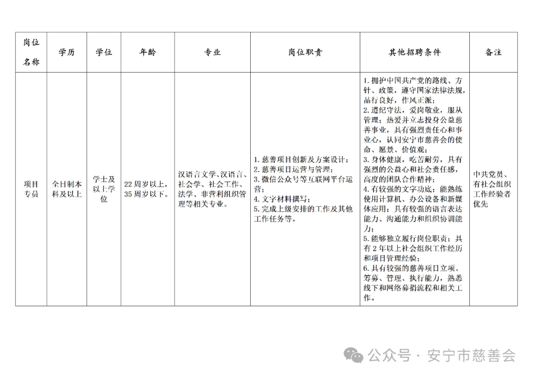 安寧市慈善會關(guān)于公開招聘專職工作人員的公告