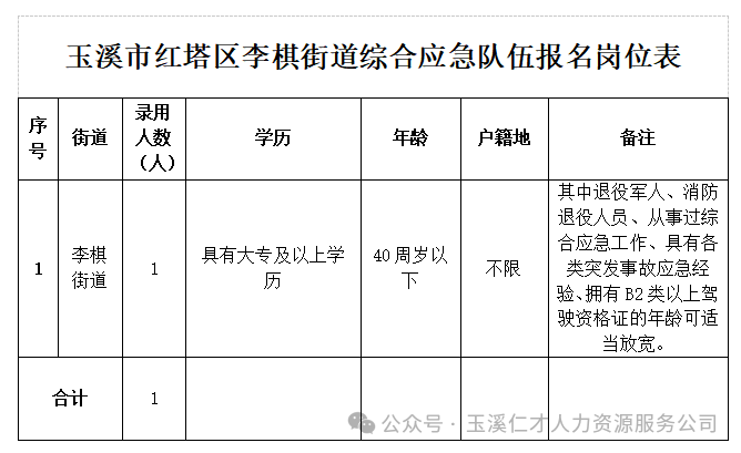 7.具體條件參照紅塔區(qū)李棋街道綜合應(yīng)急隊(duì)伍報(bào)名崗位表。